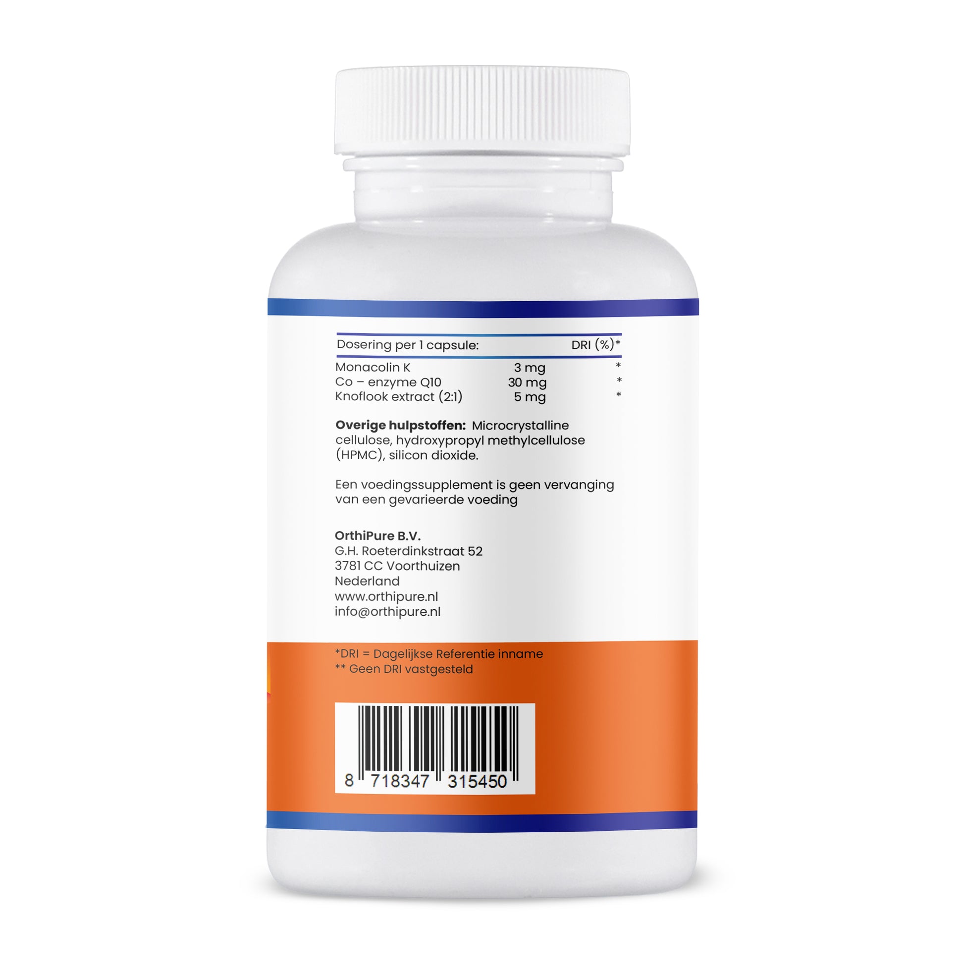 OrthiPure Rode Gist Rijst & Q10 is een zorgvuldig samengesteld supplement dat rode gist rijst combineert met zwarte knoflook en co-enzym Q10. Elke capsule bevat 3 mg monacoline K en is geschikt als aanvulling op een gevarieerd voedingspatroon.