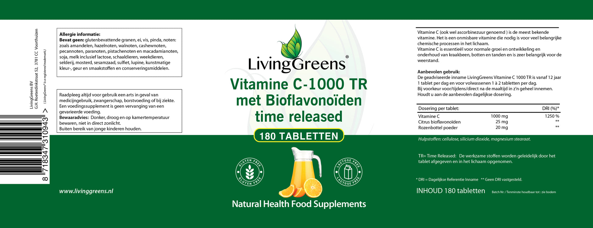 LivingGreens vitamine C 1000 TR 180 tabletten